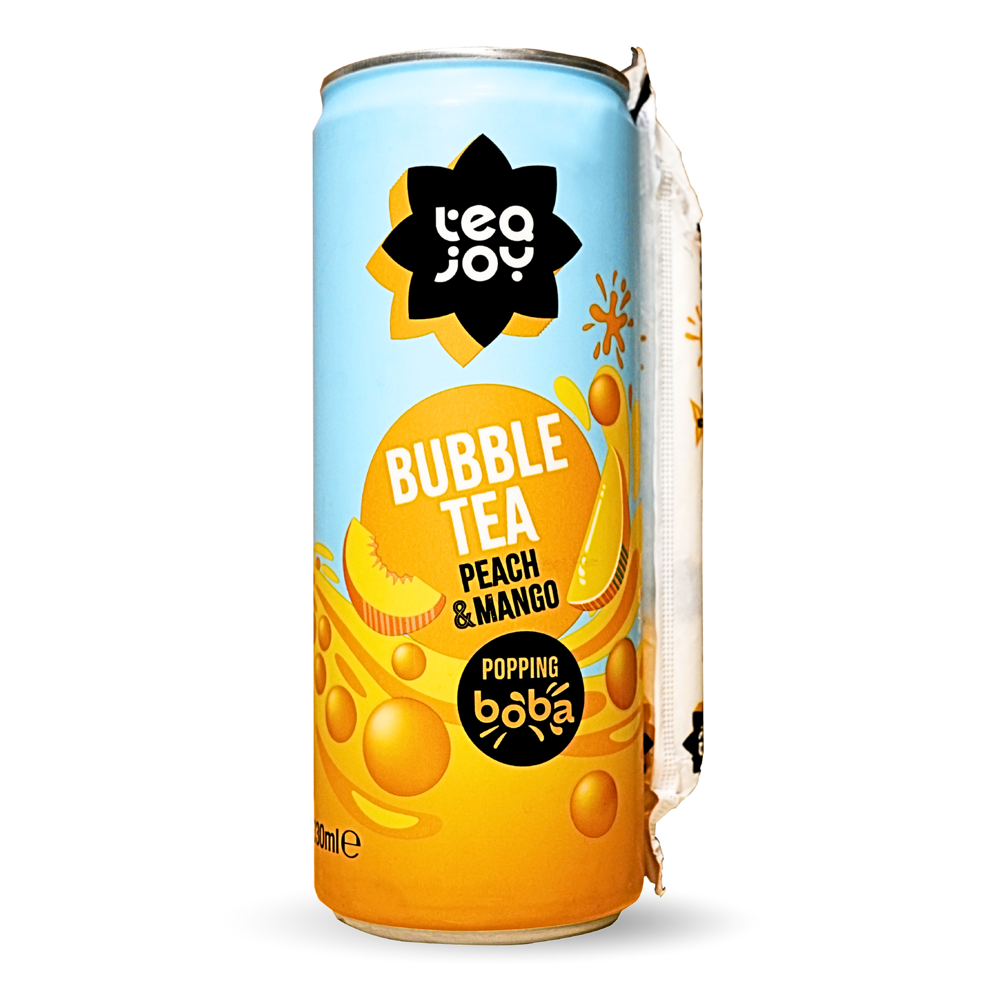 - 12 x 330ml ready-to-drink Peach Mango Bubble Tea cans