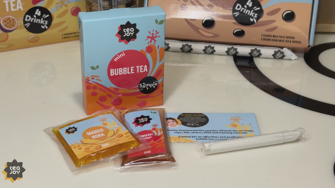 Serve Bubble Tea Magic in Just 20 Seconds! The fastest, simplest way to serve bubble tea with none of the fuss, and all the joy.The perfect all-in-one solution - each kit is a bubble tea shop in a box! Kits include tea, topping, branded cups, lids, straws, and POS making service a breeze.Just add water, ice, stir and serve.Made with authentic premium Taiwanese tea, real fruit juice, and popping boba that pops with ever sip, we make it easy to serve joy in a cup.Our freshly made bubble tea gives you high margins and meaningful profits.